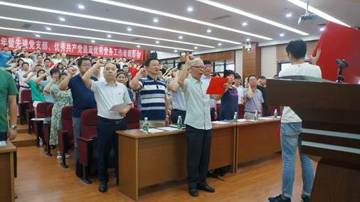 关心下一代工作委员会副主任、有61年党龄的老同志梁明征带领下,全体与会党员同志一起铿锵有力地宣读入党誓词、铭记共产党人的初心和使命!