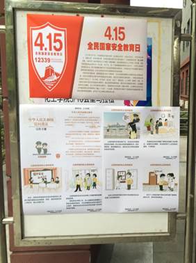 在宣传栏和微信公众平台宣传国家安全重点法律法规和党的十九大精神,增强了全院师生对国家安全、反间谍、反恐怖主义法律的了解,强化了公众维护国家安全和社会稳定的意识,让“总体国家安全观”入脑入心。每位师生都应铭记,每个公民都是国家安全红利的享受者,同时也承担着维护国家安全的责任,必须自觉做国家安全的坚定捍卫者。