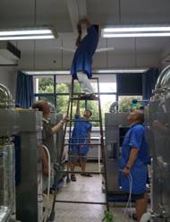 工程实验中心本着以人为本的宗旨,利用实验课程结束与国际周的空档期,加班加点为干燥实验室增加排风换气的吊扇设备。经过前期的论证、采购工作后,安装工作于2015年7月13日完成,达到了最小花费,最大效益的实验室环境改造目的。实验中心将持续化改进实验室条件,为广大师生提供优良的实验工作环境。
