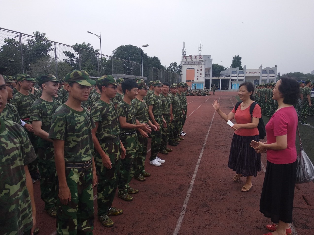 看到同学们晒得黝黑的脸庞,李川娜老师深情地回忆了自己几十年前的军训生活,向同学们分享了自己的美好回忆,还展示了当年自己的照片。看到李川娜老师当年的英姿,聆听了李老师的追忆,同学们感同身受,引发了内心强烈的共鸣。李川娜老师表示,希望同学们能够好好珍惜军训时光,培养自己吃苦耐劳、坚持不懈的优良品质。李老师的一番话极大地鼓舞了同学们,大家纷纷表示一定会严格训练,积极进取,争取为自己交出一份完美的答卷。