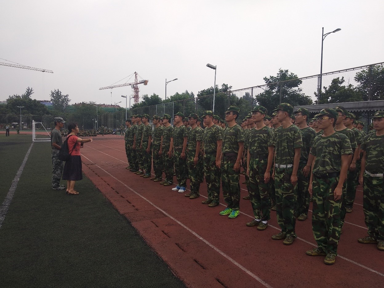 来到训练场,同学们正迎着烈日,进行分列式方队训练,他们动作规范整齐,步调一致,展现出了化工学子们自强不息昂扬向上的精神风貌。经过短暂的整队,同学们神采奕奕地站在了教导员们的面前,他们一个个精神抖擞、身姿挺拔。李川娜老师赞扬了同学们在军训中表现出的坚忍不拔的优秀品质。
