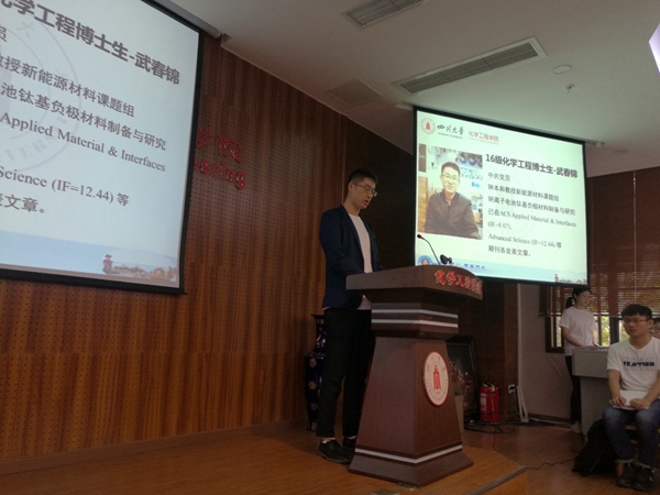 随后,高年级学生代表2016级博士武春锦与新生们分享了他的科研经验。他强调,做科研要沉得下心,且要虚心向导师与师兄师姐请教,认真研读文献,做好文献记录。2018级新生代表杨柯表达了对研究生新生涯的憧憬,并感谢能在四川大学学习生活,对未来的科研道路也有充足的信心。