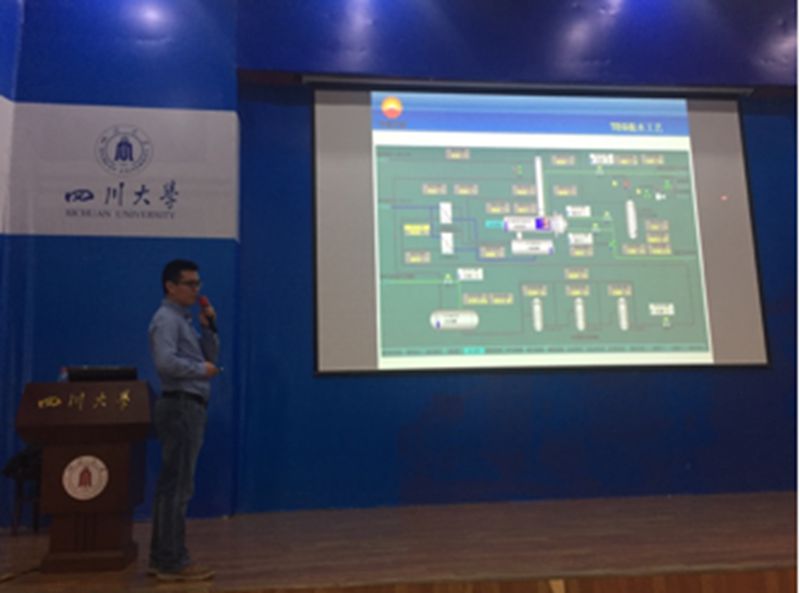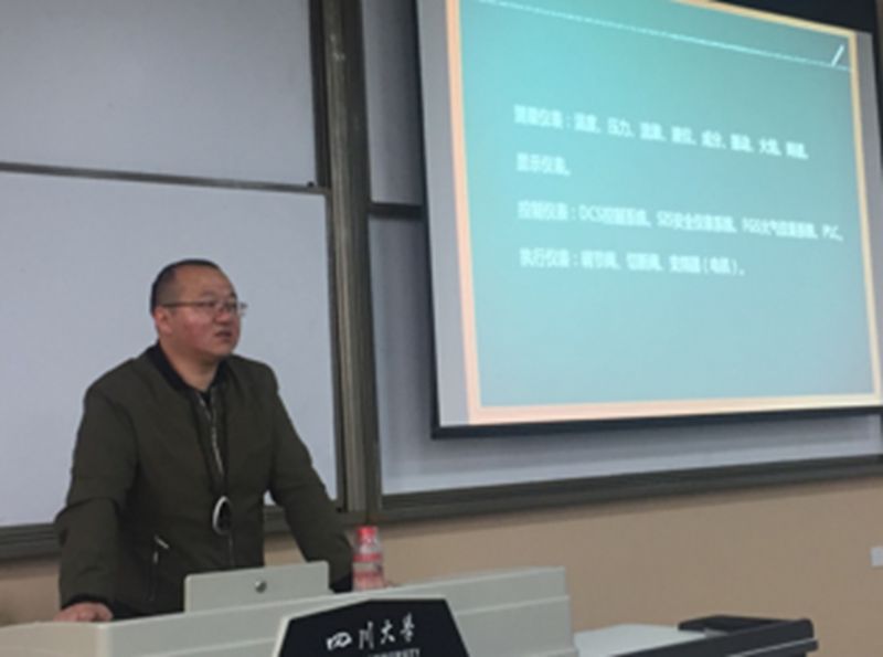 毕业于四川大学,目前担任重庆天然气净化总厂大竹分厂厂长的张小兵向同学们分享了其成长历程,并详细讲解了天然气净化的工艺流程。重庆天然气净化总厂设计研究所仪表工程师彭云则向大家介绍了天然气净化装置中使用的各种仪表以及企业在控制智能化与数字化的巨大改进,展示了现代化工企业的技术特点。最后,重庆天然气净化总厂企管法规科副科长袁伟用轻松诙谐的语言给大家讲解了企业管理方面的知识,在宣传8bo足球即时比分的同时,让同学们对企业管理有了不一样的理解。