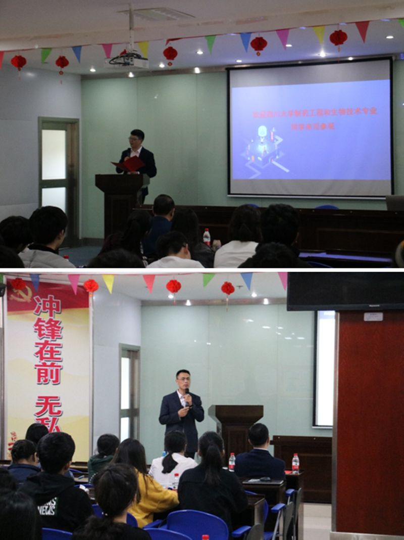 优秀毕业生胡继猛(制药工程,2009届)和牟蓉(制药工程,2018届)等与同学们进行面对面交流和答疑解惑。