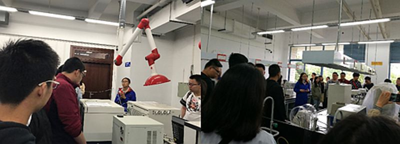 的办学历史,专业设置,学科特色等整体情况之后,林翔、李季老师带同学们参观了制药、化工专业实验室,并对相关专业的办学规模,学科特色,前沿领域等情况对学生们做了热情洋溢的讲解。左炀、魏竭老师对公用仪器平台的一些精密仪器设备的功能、原理和运行情况进行了详细讲解,并与参观学生进行了深入地交流,对他们提出的疑问给予了解答,现场气氛十分活跃。