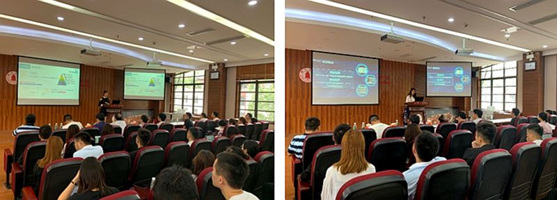 入围2019年“互联网+”大学生创新创业大赛校赛的11支参赛团队按顺序进行项目路演,对项目产品/服务介绍、市场分析及定位、商业模式、营销策略、财务分析、风险控制、团队等进行了介绍。