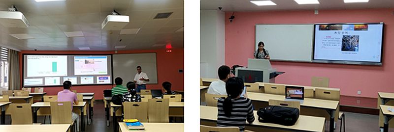 竞赛初期,第二届“探究式-小班化”教学竞赛的获奖者周加贝、赖雪飞和刘文彬三位老师也主动参与经验交流。竞赛前,三位获奖教师协助此次参赛的教师们到教室进行现场演练,对教学方式、互动模式以及教学资源的充分利用等问题进行了深入的交流、探讨,并结合自身的教学经验给予了诸多中肯的建议。
