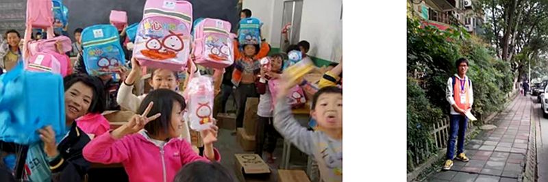 图十七:孩子们收到爱心包裹后笑逐颜开 图十八:走在成都街头向行人劝募