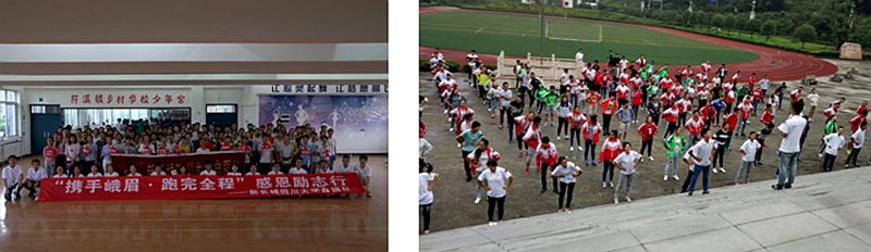 图十五:带队在峨眉七中开展跑完全程活动 图十六:带队在映秀中学开展跑完全程活动