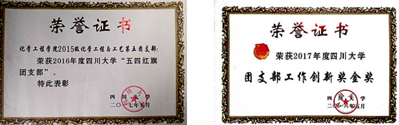 图五:五四红旗团支部荣誉证书 图六:团支部工作创新奖金奖