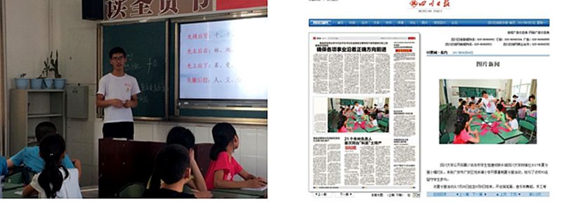 图七:支教授课图(书法课) 图八:《四川日报》跟踪报道支教