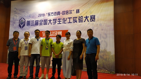 在全国总决赛中,我校三位选手互相鼓励、齐心协力,克服台风“利奇马”带来的不良天气影响,沉着冷静,通过理论、仿真和化工实验三个赛项的考核,最终荣获全国总决赛一等奖,为学校赢得了荣誉。