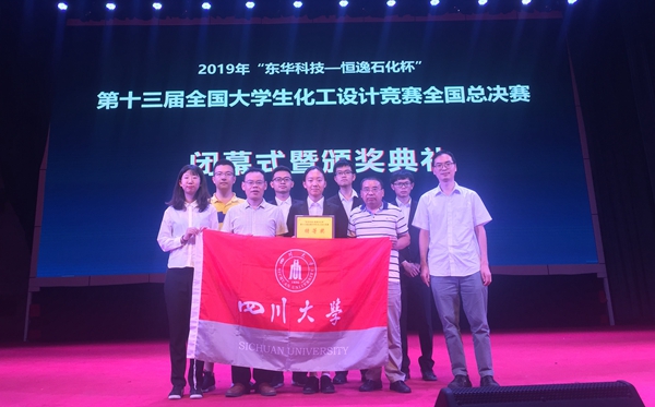 第十三届“东华科技—恒逸石化杯”全国大学生化工设计竞赛全国总决赛于2019年8月18—23日在中北大学举行。经过2天的专项评审,2天时间竞赛答辩,四川大学“SCU超越队”不惧强敌,凭借完善的作品,高质量的设计文档、娴熟的专业软件应用,清晰流畅的现场答辩,从60支总决赛的队伍脱颖而出,在死亡之组中杀出重围挺进第二轮,最终斩获全国总决赛特等奖,这是足球比分app