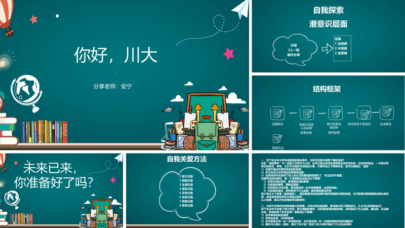 该次交流包括让同学们学会认识自我、发现自我与关爱自我:认识自我,通过手绘探究潜意识中的自我。一次即兴的绘画,包括太阳、山、田野、房屋和风景,就可能在画中反映更真实的想法。