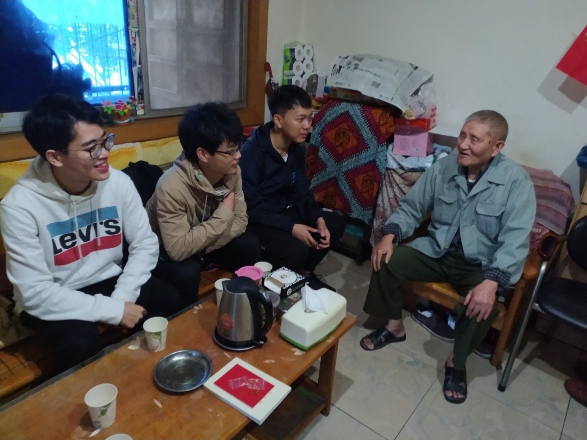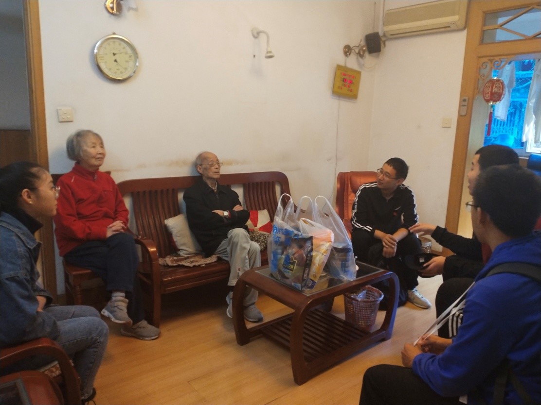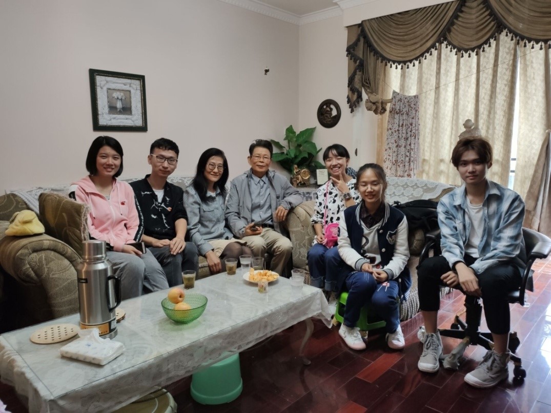 游贤贵老师,虽年逾八十但仍红光满面神采奕奕。游老师与志愿者们谈起了自己的求学和工作经历,并关心我们生活、学习上是否适应,还给出了实用中肯的建议,使学生志愿者们受益匪浅。
