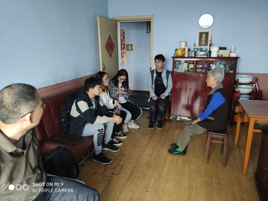 图8.陈应祥、郭志琴老教师与学生志愿者们亲切交流