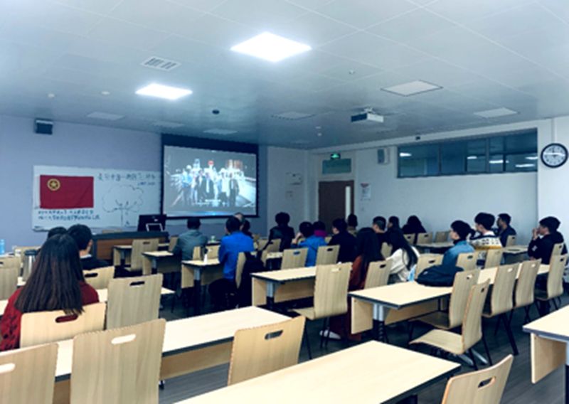 图2.老师与同学们观看了《我和我的祖国》电影中香港回归片段照片