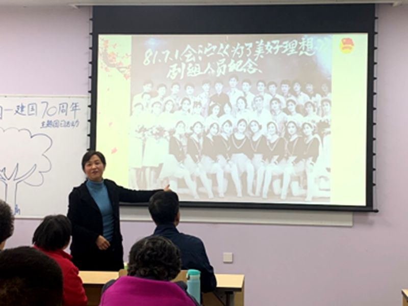 大家展示了建国70年以来中国人民在衣食住行四个方面的变化,展现了在中国共产党的带领下,中国人民的生活条件得到了巨大的改善,生活水平有了显著的提高,人民安居乐业,社会安定和谐。四名同学们的精彩讲述让关工委的老师们产生了很大的共鸣,引起了在座老师与同学们热烈的讨论。