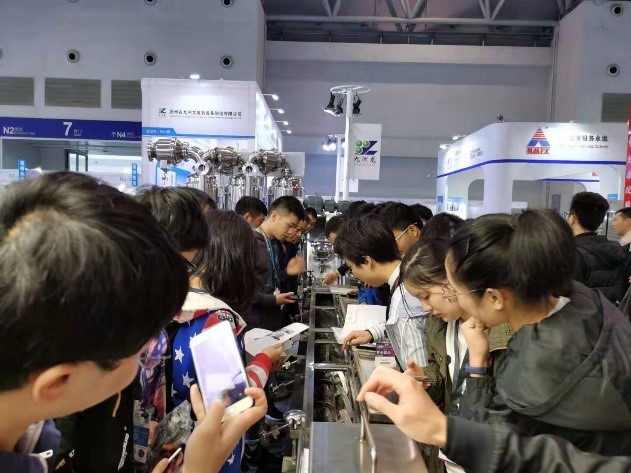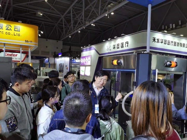 同学们在不同的展位观看和学习了制药照明系统、中药提取装置、不同类型的离心过滤设备、片剂检测仪器、制粒设备、压片机、激光粒度仪、微生物检测仪器等。了解到仪器和设备的工作原理,同时也进一步知晓了设备选型时需要考虑的工作效率、洁净度、安全性等因素。