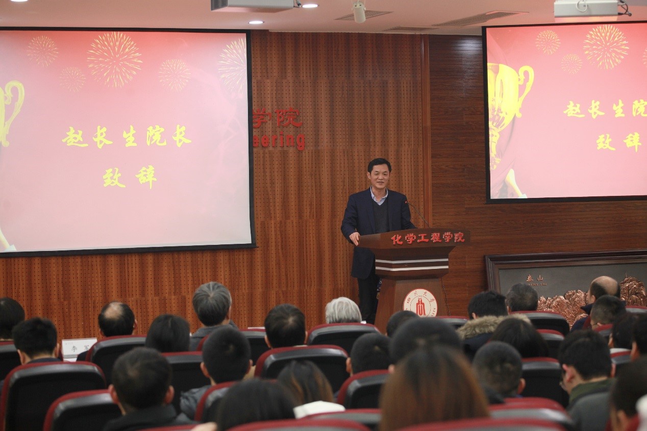 领导赵长生院长,李天友副书记,唐盛伟副院长、姜利寒副书记及磷化工科研团队120余师生参加了此次典礼。典礼由“钟本和奖学金”评审委员会副主任王辛龙教授主持。