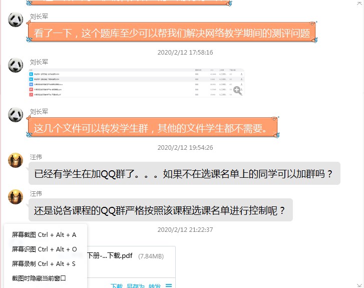 化工原理教研室老师分别通过QQ群进行了网络教研活动。