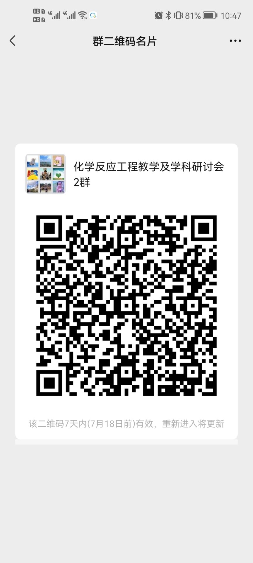 请参会老师于2022年7月15日前,填写参会回执并发送至会务邮箱:[email protected],请各位老师7月20日前加入化学反应工程教学及学科研讨会微信群。如上届未参会入群,请于7月8日前扫下面二维码入群: