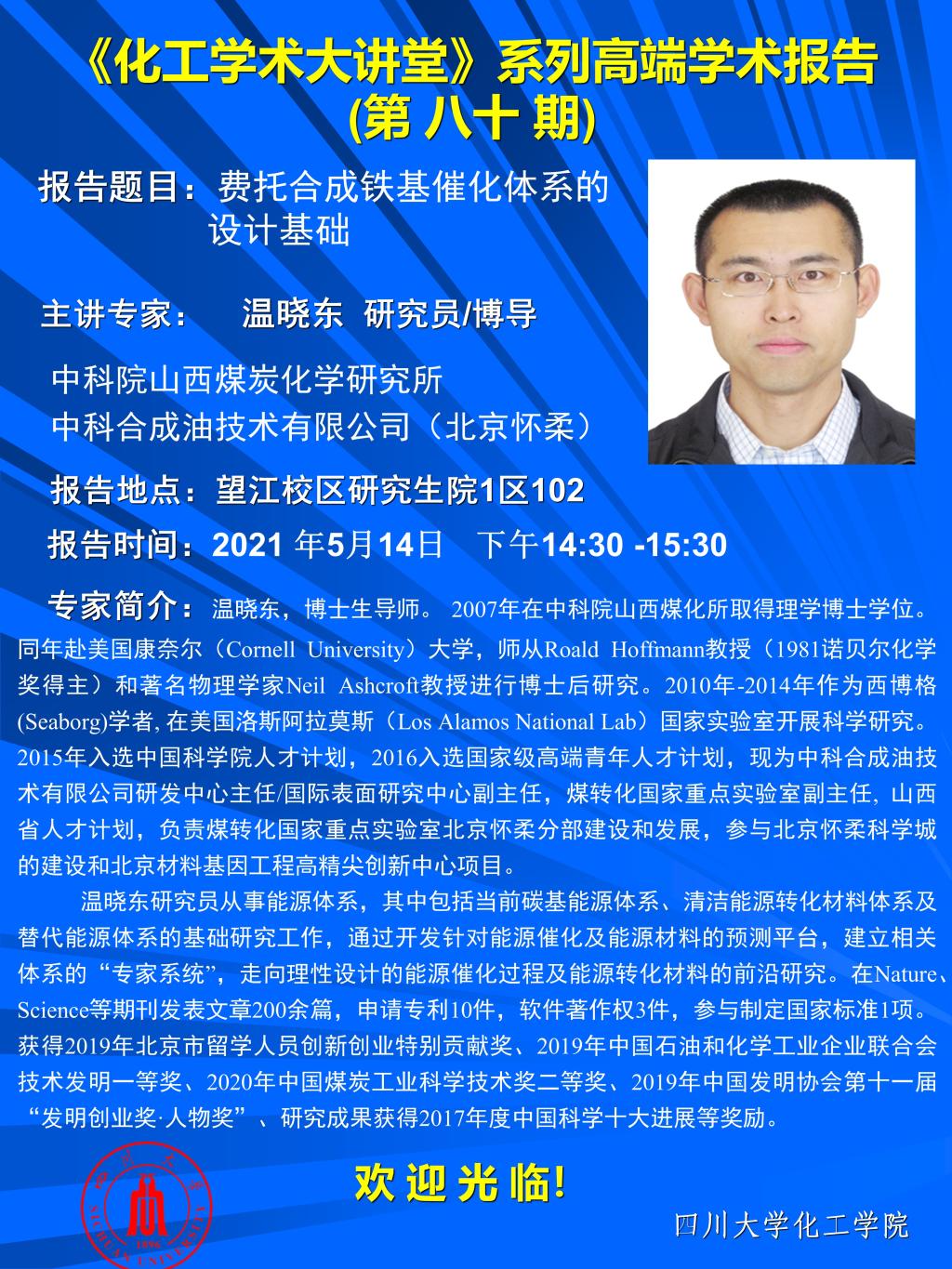 讲座老师 温晓东 研究员 讲座地点 望江校区研究生院1区