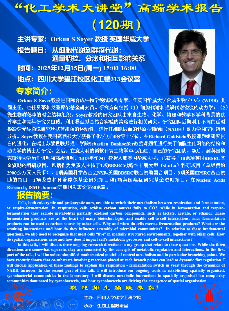 上一条:【卓越大讲堂】-化工学术大讲堂-计算机辅助过程仿真工具在教学和科研中的应用 下一条:【卓越大讲堂】-化工学术大讲堂-第四代干燥技术:先进流化床干燥和先进热泵辅助干燥