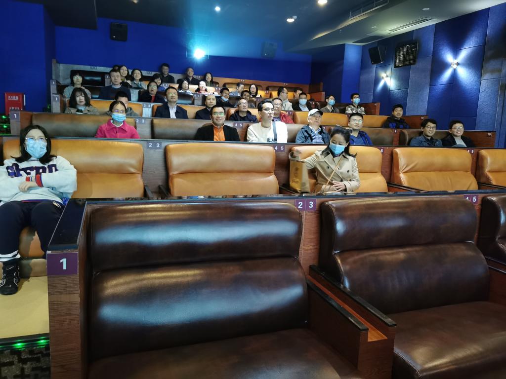 教师观看抗美援朝题材电影《金刚川》。