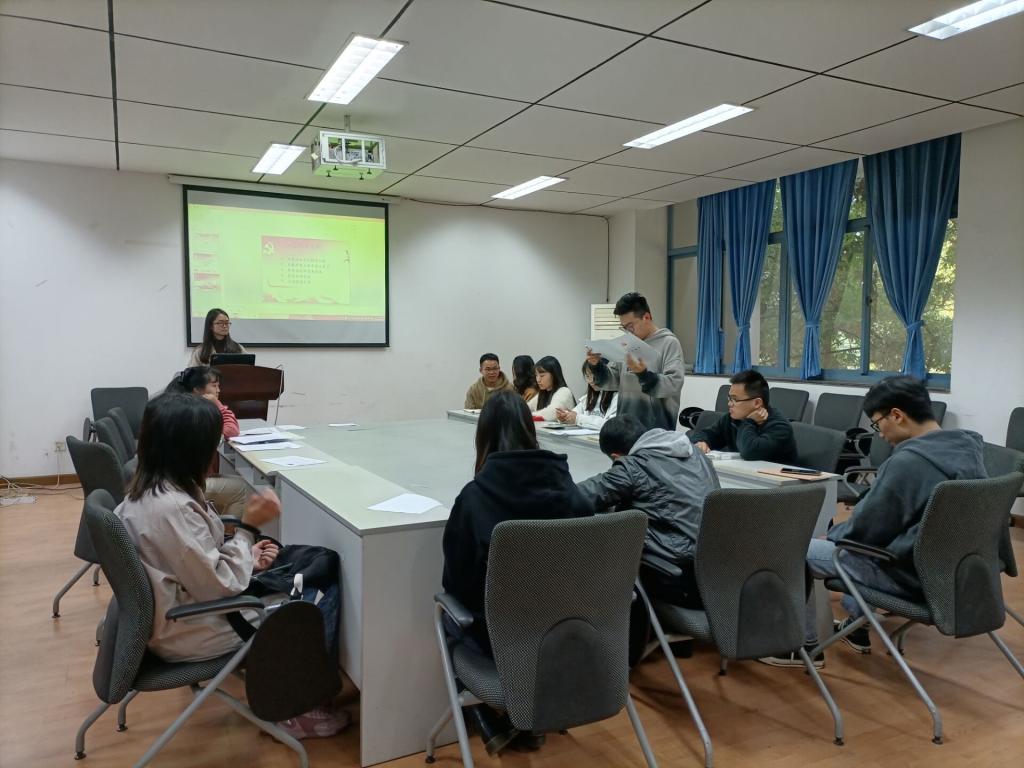 首先,李新路同志介绍了今后支部组织生活的主要学习内容,要求党员同志们关注时事政策,保持学习状态。之后,进行关于刘泽坤同志发展为中共预备党员的讨论,刘泽坤同志介绍了自己的基本情况和主要生活经历,并对自己近阶段的学习状态和思想情况进行总结汇报,其后表达了自己努力向党组织靠拢的决心和成为一名光荣的中共预备党员的信心。在其入党介绍人介绍其相关情况之后,多位党员发表了自己的意见,经到会13名正式党员无记名投票表决,一致通过刘泽坤同志的入党申请,确定发展其为中共预备党员。