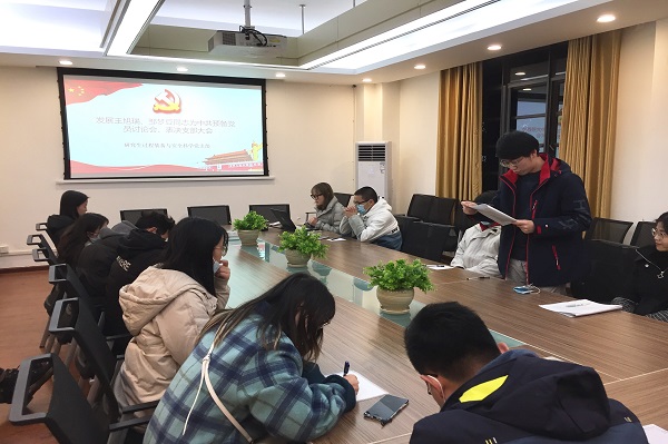 227会议室举行了关于发展王旭瑞、邹梦豆同志为中共预备党员讨论、表决的支部大会。此次会议由研究生过程装备与安全科学党支部武雯颖主持,支部全体党员参会。