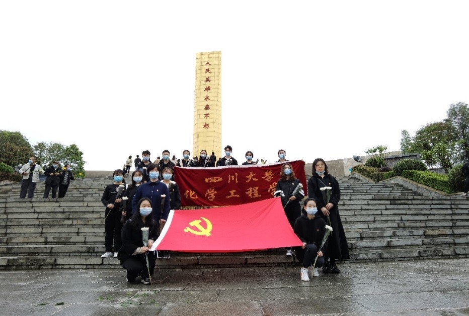 部分党员同学来到成都市烈士陵园,举行清明节祭奠革命烈士活动,缅怀先烈,寄托哀思。