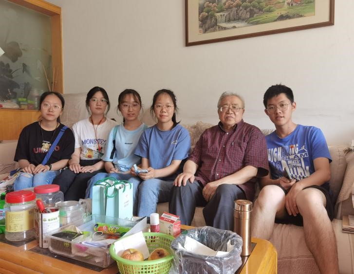 第三组六名同学前往傅运清老师家里拜访。傅老师询问了同学们学习生活的各种情况,也讲述了当年在她大学学习的日子,叮嘱同学们要着眼当下,培养真才实学。