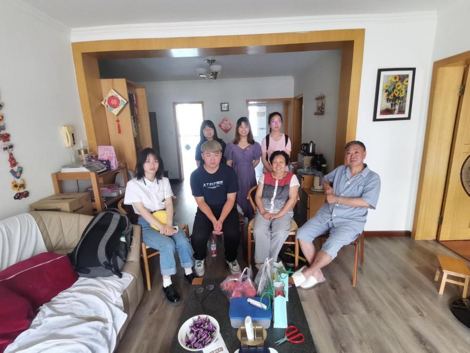 第四组六名同学,来到刘慕尧老师家中。在给老师送去慰问品的同时,与老师进行了亲切交谈,并帮助老师进行了简单的家务清扫。