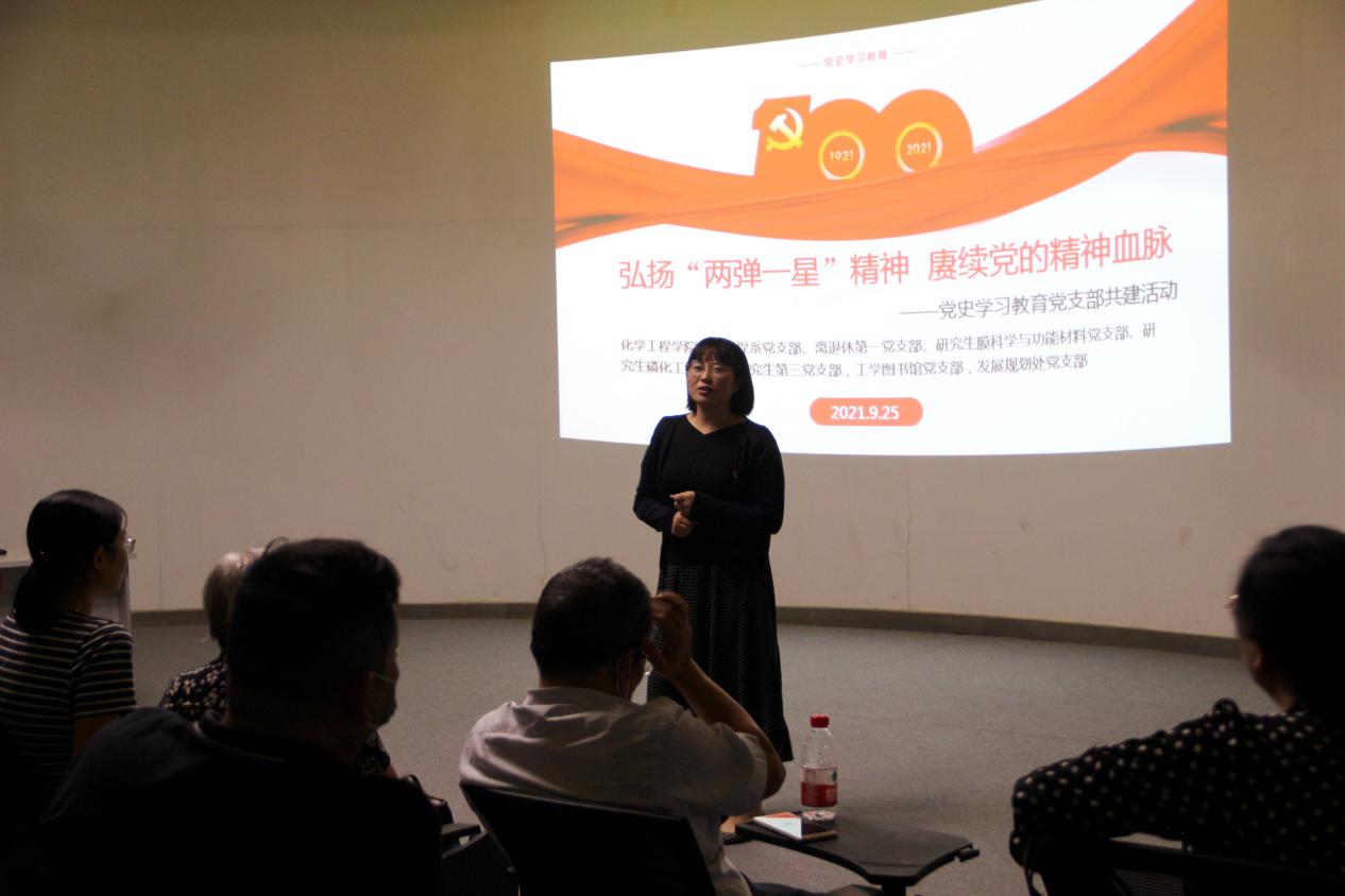 化学工程系党支部、离退休第一党支部、研究生膜科学与功能材料党支部、研究生磷化工党支部、研究生第三党支部和工学图书馆党支部及发展规划处党支部联合开展党史学习教育,赴绵阳科技馆参观学习,共上主题党课,共商党建与事业融合发展。