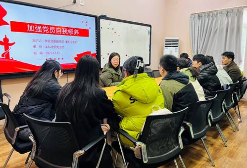 党委副书记姜利寒老师,开展主题为“加强党员自我修养”的党课。本科社区党支部李珍珍老师、付率老师以及9名学生党员和发展对象参与此次活动。