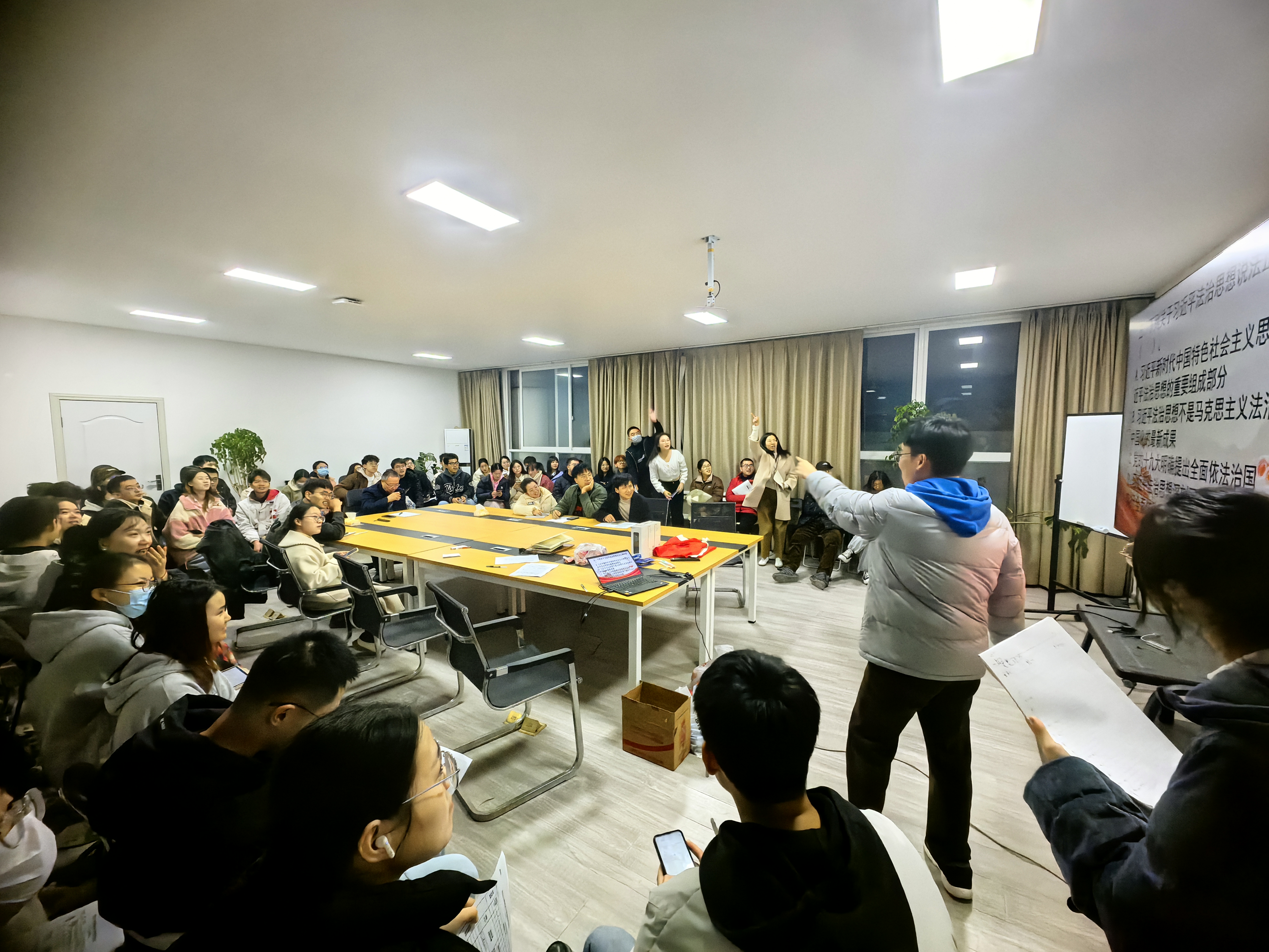 活动首先由反应工程党支部书记姚宏同志作开场白,他先向大家介绍了这次活动的目的和意义,充分阐述了深入学习贯彻习近平新时代中国特色社会主义思想理论的重要性。正式竞赛环节由第五党支部委员熊朝智同志主持和反应工程党支部组织委员马天丽同志计分。赛程规则为先答计分、答错扣分,参赛党员分为十五组,在主持人的指令下进行作答。抢先作答的赛程方式不仅考验选手对知识掌握的熟练度,也要求选手要对理论有着深刻准确的认识。