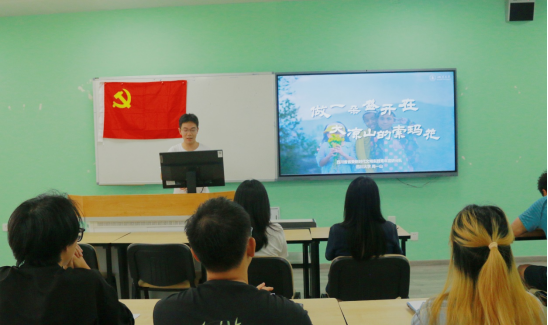 会议第二项,为加强朋辈引领,充分发挥优秀学生党员的榜样作用,本次活动邀请到四川省省委宣讲团新时代文明实践青年宣讲分队成员、四川大学青年讲师团成员周一山同志开展主题为“做一朵盛开在大凉山的索玛花”的宣讲。周一山同志围绕着自己奔赴大凉山参与支教的经历和切身感受,用一个个真实的故事,向我们传达出“爱与被爱是这个世界上最重要的事”的感悟。同时,也鼓励在座的党员同志,坚守初心,牢记使命,努力用心“做好一件终身难忘的事”。