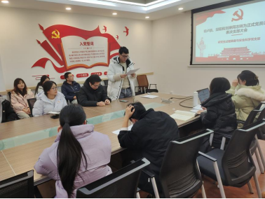 227会议室开展了将卢凯、邱阳和刘琳三名同志转为正式党员的支部大会,本次大会由支部书记刘思铃同志主持,气氛庄重而热烈。