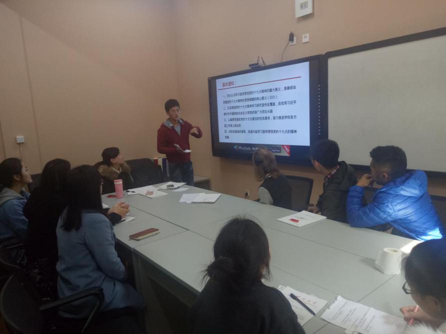 本科第二党支部于四川大学江安校区三舍会议室召开了预备党员转正会议暨十九大精神学习组织生活会,党支部书记李珍珍老师,党支部副书记李福林,以及支部成员全体党员参与了本次会议。