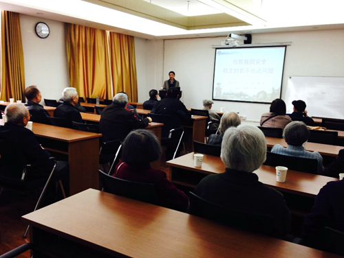 张诚教授从近年来国际形势发生的深刻变化入题,为离退休党员同志们首先介绍了国际形势以及我国周边环境中的战略压力和地缘风险。接着讲解了境内外敌对势力对我国的渗透破坏,以及影响我国安全稳定的长期因素等等。