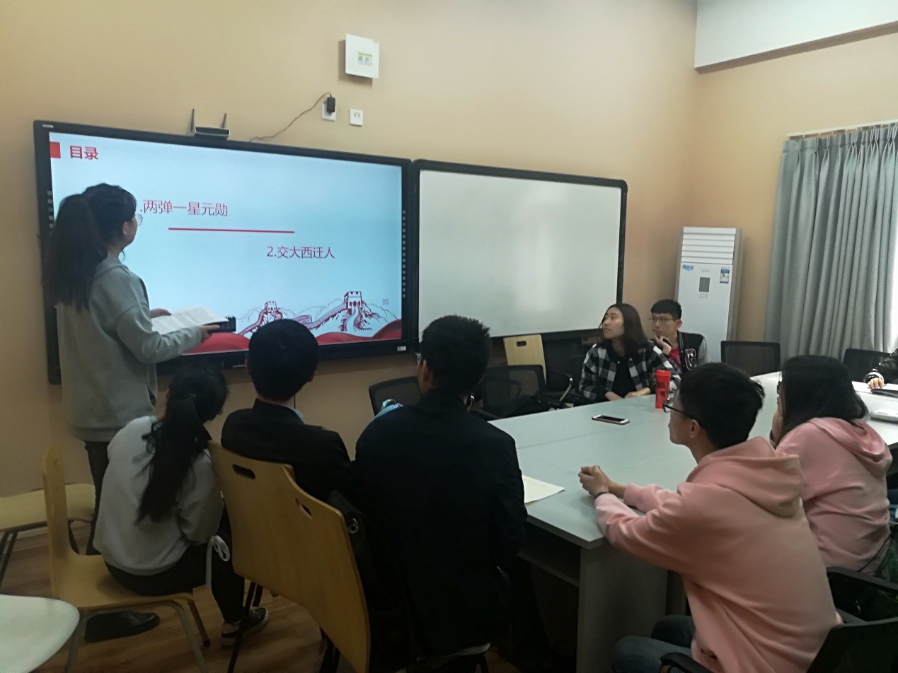 首先,冯夏源同志对此次会议的背景进行了介绍。近年来,习近平总书记对弘扬爱国奋斗精神作出一系列重要指示,指出爱国主义是中华民族精神的核心,爱国主义精神激励着一代又一代中华儿女为祖国发展繁荣而不懈奋斗。接着对两弹一星元勋——钱学森同志的事迹和精神进行了赞扬,钱学森先生早年赴美留学,得知新中国成立后,一心想回国为祖国效力,经过书信求救以及周恩来外交上的不断谈判,钱学森的艰难归国之路才得以结束,归国之后,钱学森潜心科研,为我国航空航天领域做出了巨大的贡献,这种爱国和敬业精神值得我们学习和发扬;然后又冯夏源同志讲述了交通大学的西迁历史,老一辈的知识分子放弃了繁华的上海,而选择扎根条件艰苦的西部地区,他们践行“党让我们去哪里,我们背上行囊就去哪里”和“始终与党和国家的发展同向同行”的信念,让西安交大得以发展壮大,为我国科技事业的发展做出了卓越的贡献。