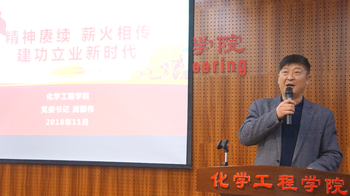 报告会上,庞国伟书记首先向全体教师一年来辛勤工作表示感谢。他说到,2018年是贯彻落实党的十九大精神的开局之年,也是纪念改革开放40周年,更是校院两级拼搏向上、为实现学校“两个伟大”的关键之年。今天的党课报告会,就是希望全院师生能够深入学习贯彻习近平新时代中国特色社会主义思想和党的十九大精神,深入学习贯彻习近平总书记关于人才工作、知识分子工作重要指示精神,深入学习黄大年、李保国、南仁东、钟扬等为代表的新时代优秀知识分子的感人事迹和爱国情怀,深入学习我校知名院士、杰出教授、优秀教师等一批先进知识分子群体的担当奉献精神,引导广大教师在即将到来的新一年自觉弘扬践行爱国奋斗精神,为全面推进学校党的建设新的伟大工程和建设世界一流大学新的伟大事业作出应有的贡献。