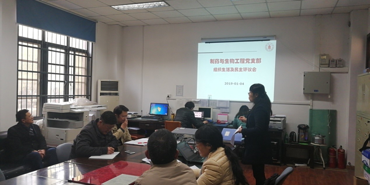 2019年1月4日下午,在化工楼114会议室,制药与生物工程系支部所有在职党员进行“专题组织生活会暨党员民主评议会。