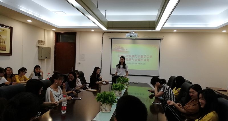 会上,徐敏航同志从“校园里宗教传播的若干现象”出发,引导大家对校园里有关宗教传播现象进行思考与讨论。随后她带领大家对“如何正确认识宗教”以及“我国关于宗教与教育相分离的法律法规”等内容进行了深入的学习。她谈到:“在当今世界,民族与宗教问题相互关联,显得尤为突出,不能把民族与宗教混为一谈,要具体问题具体分析。作为一名高校学生,必须遵守国家相关法律和宗教政策,严禁在学校传播宗教、发展教徒,严禁在学校设立宗教活动场所、举行宗教活动,严禁在学校建立宗教团体和组织。同时,要警惕境内外反动势力、非法宗教的渗透,尤其是披着宗教外衣进行违法犯罪和反动破坏活动的个人或组织,切不可因一时好奇陷入陷阱。不能阅读和宣传未经政府部门批准出版发行的宗教书刊,如果接到了散发或者邮寄的宗教宣传品或邀请信,切不可轻易参加或者宣传,应主动报告老师或学校保卫部门,并配合学校进行工作。”