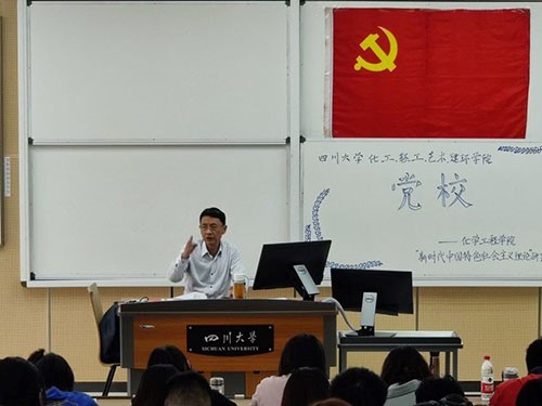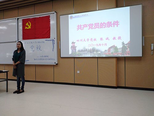 图2.张诚老师进行第二讲“共产党员的基本条件”授课