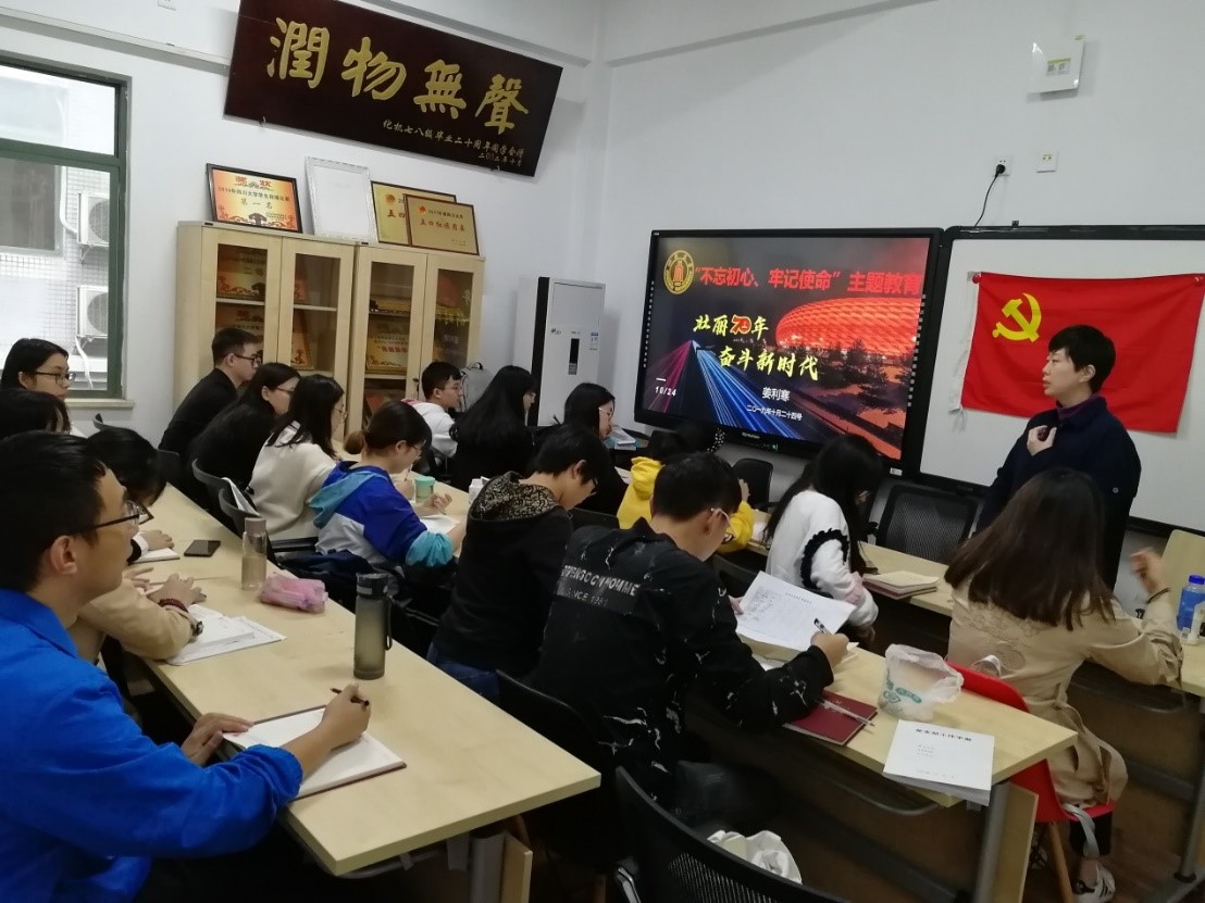 党委副书记姜利寒以《壮丽70年,奋斗新时代》为题为支部党员主讲党课,从政治、经济和文化三个方面来回首70年壮丽的奋斗历程,时刻告诫党员牢记中国共产党领导是中国特色社会主义最本质的特征、是中国特色社会主义制度的最大优势。