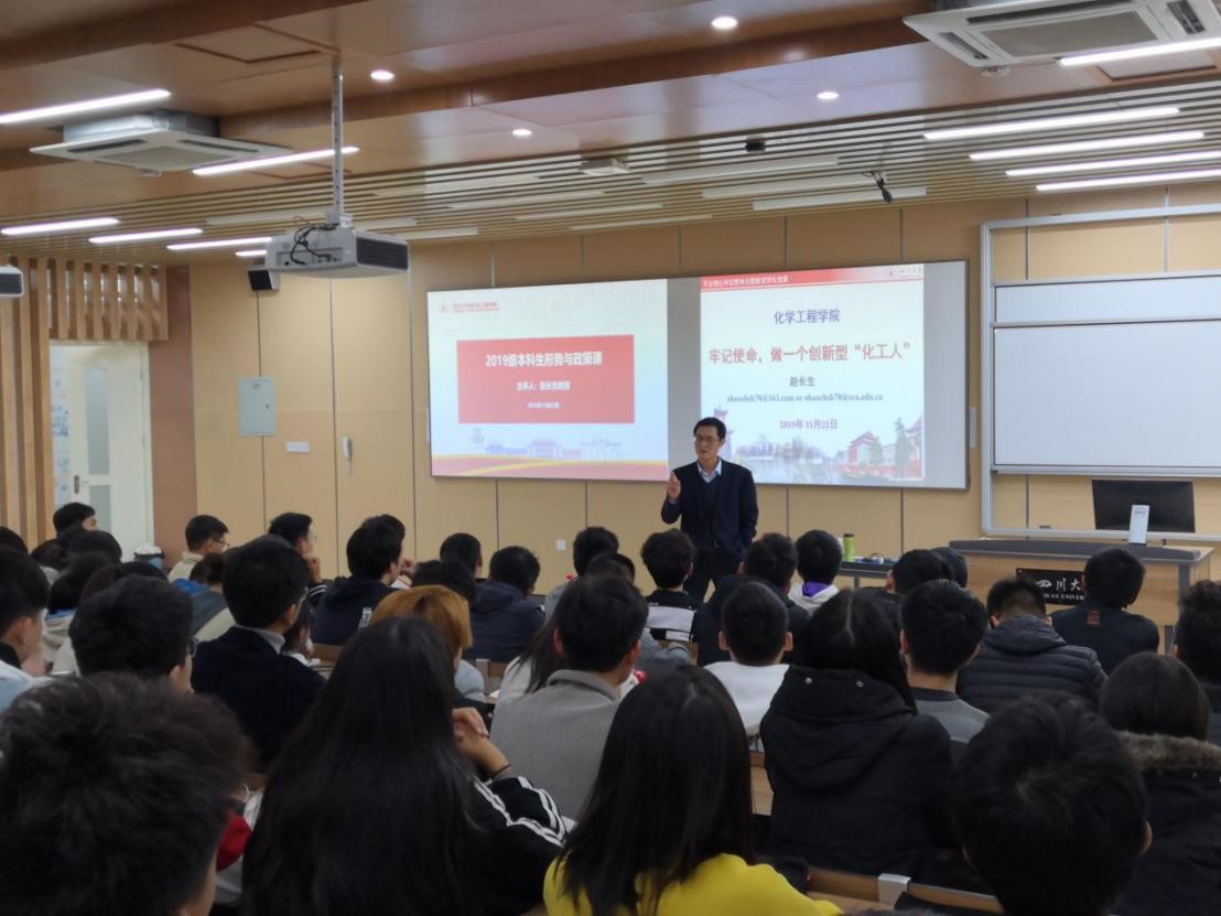 在热烈的掌声中,赵院长走向讲台,为同学们带来了题为“牢记使命,做一个创新型‘化工人’”的新生讲座。赵院长首先对同学们顺利考入四川大学表示祝贺,对同学们选择就读8bo足球即时比分