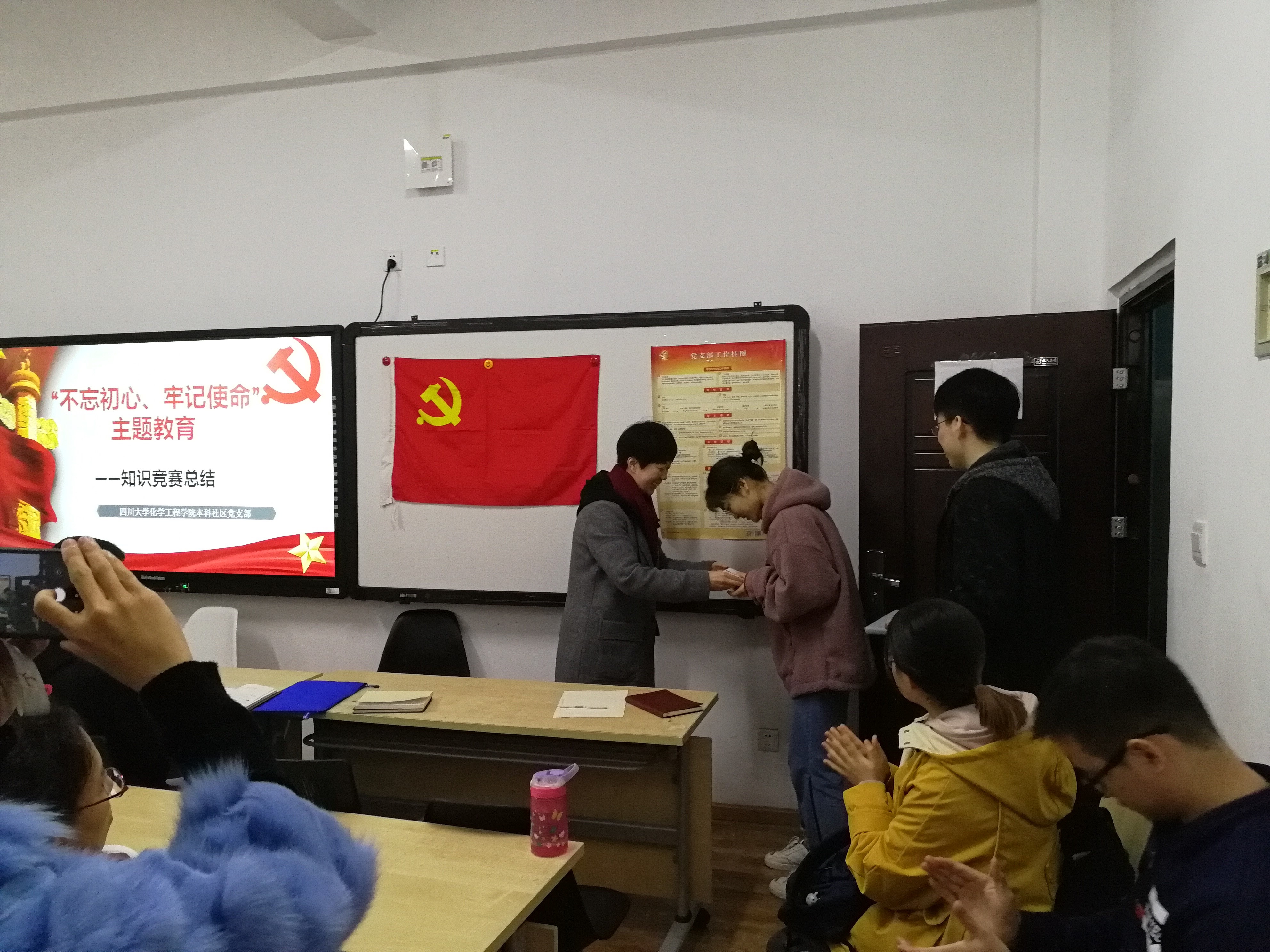 本科社区党支部在江安校区三舍活动室举行庆祝“不忘初心 明确责任担当,牢记使命 争当优秀党员”的知识竞赛颁奖仪式。8bo足球即时比分