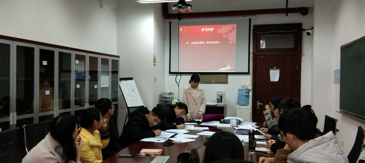 研究生第三党支部于12月6日10:00,在四川大学江安校区第一基础实验楼316会议室,召开党支部集体学习大会。会议由党支部书记贾璐菡同志主持并带领各位支部成员进行学习。在会议正式开始前,组织委员把余德同志确认到场人数,此次党支部大会支部成员应到20人,实到18人,2人请假。